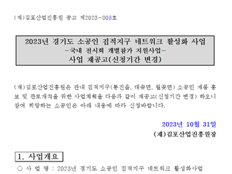 2023년 경기도 소공인 집적지구 네트워트 활성화 사업(국내 전시회 개별참가 지원사업) 재공고김포시